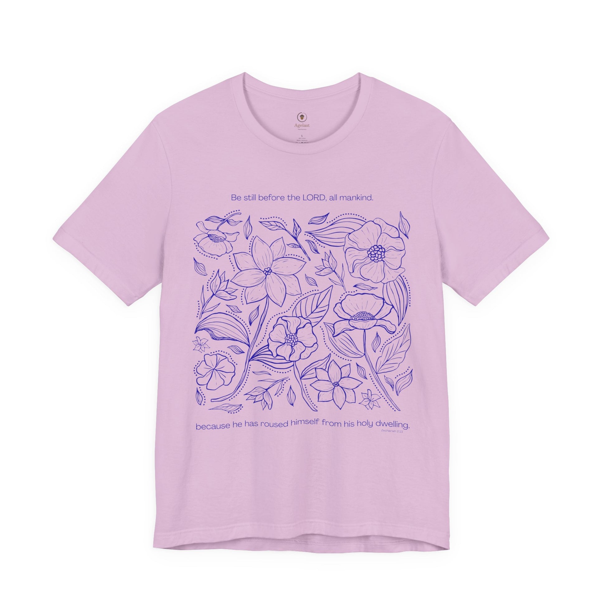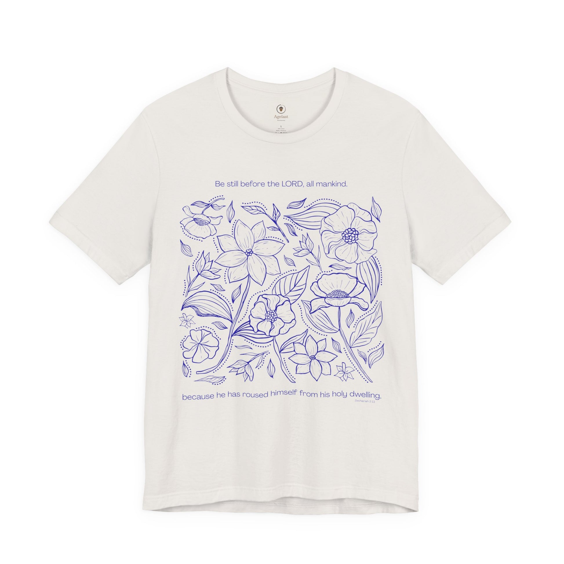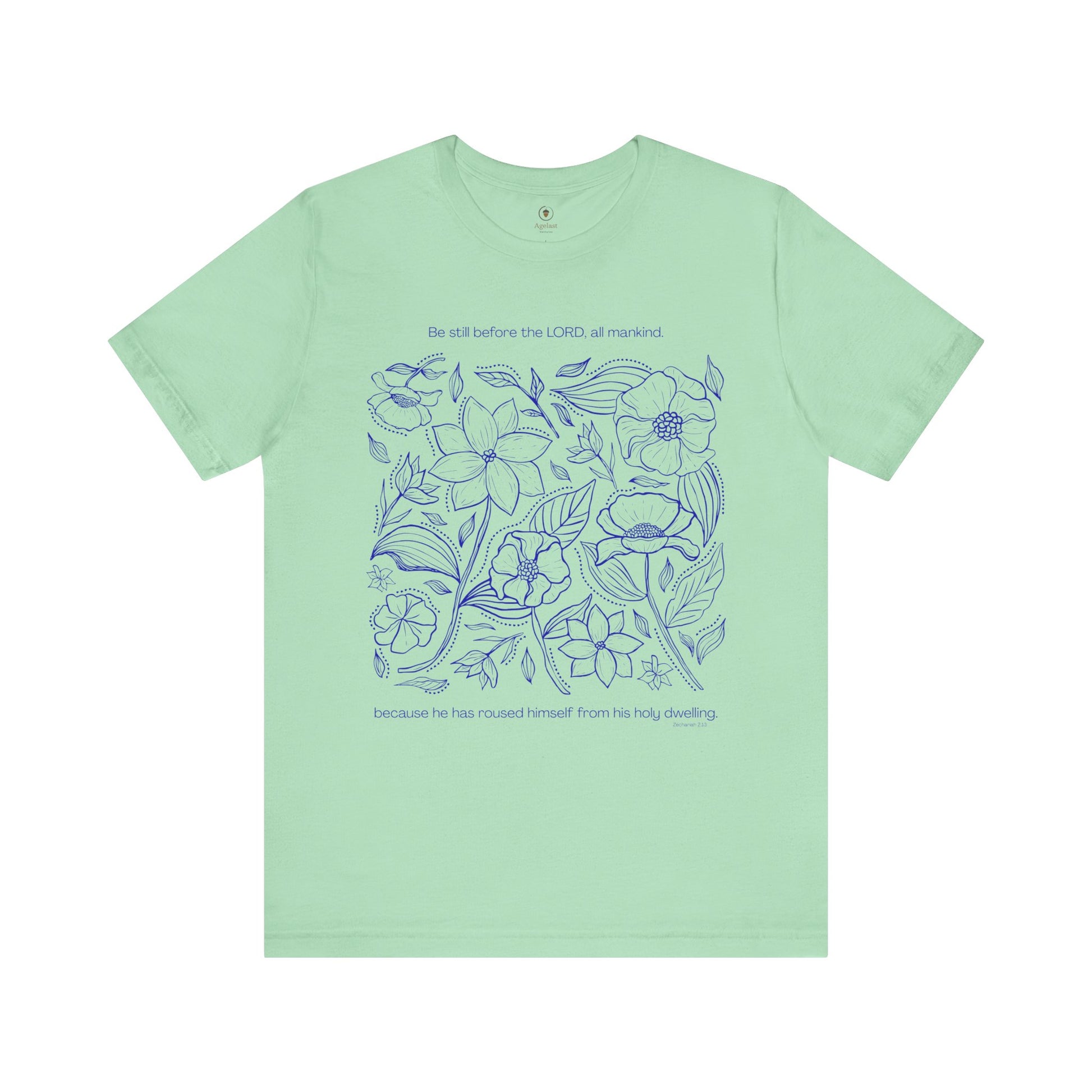 Zechariah 2:13-- ideal for those who enjoy sparking conversations and sharing their faith. This shirt gives off a casual and laid-back vibe, perfect for everyday wear or casual gatherings. Also great for formal events (if you think you can get away with it).