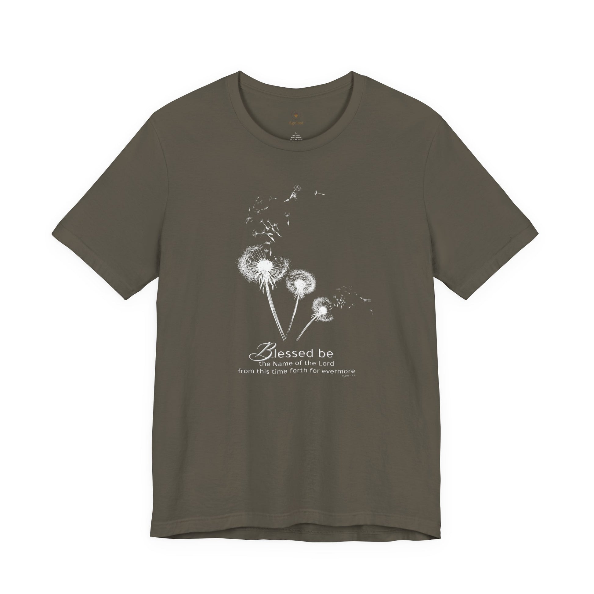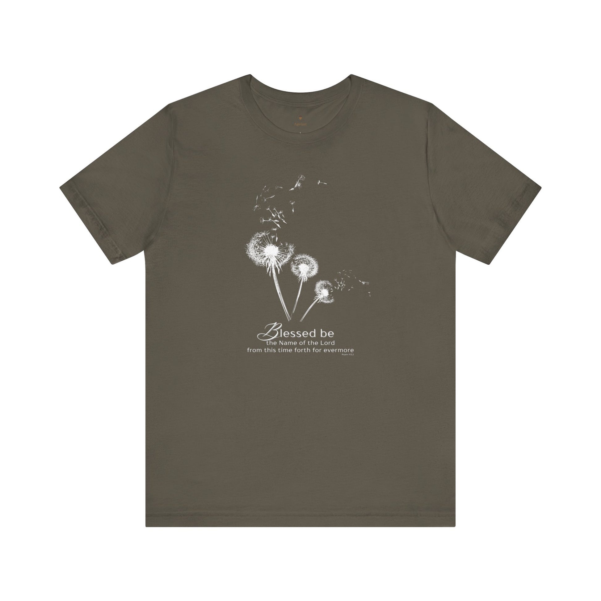 Psalm 113:2 -- blessed is his name... wear this shirt to proclaim it.. This shirt gives off a casual and laid-back dandelion vibe, perfect for everyday wear or informal gatherings. Also great for formal events (if you think you can get away with it).