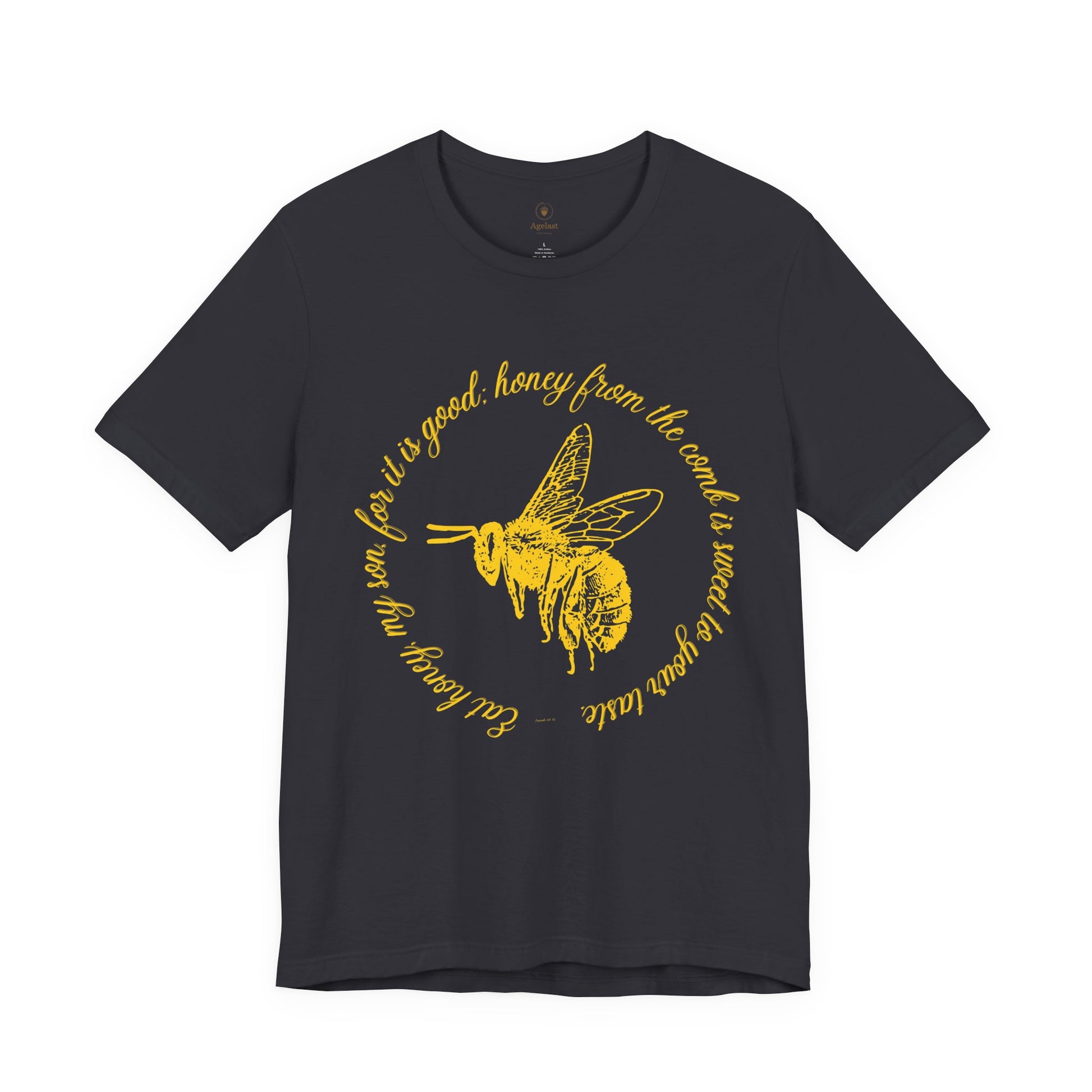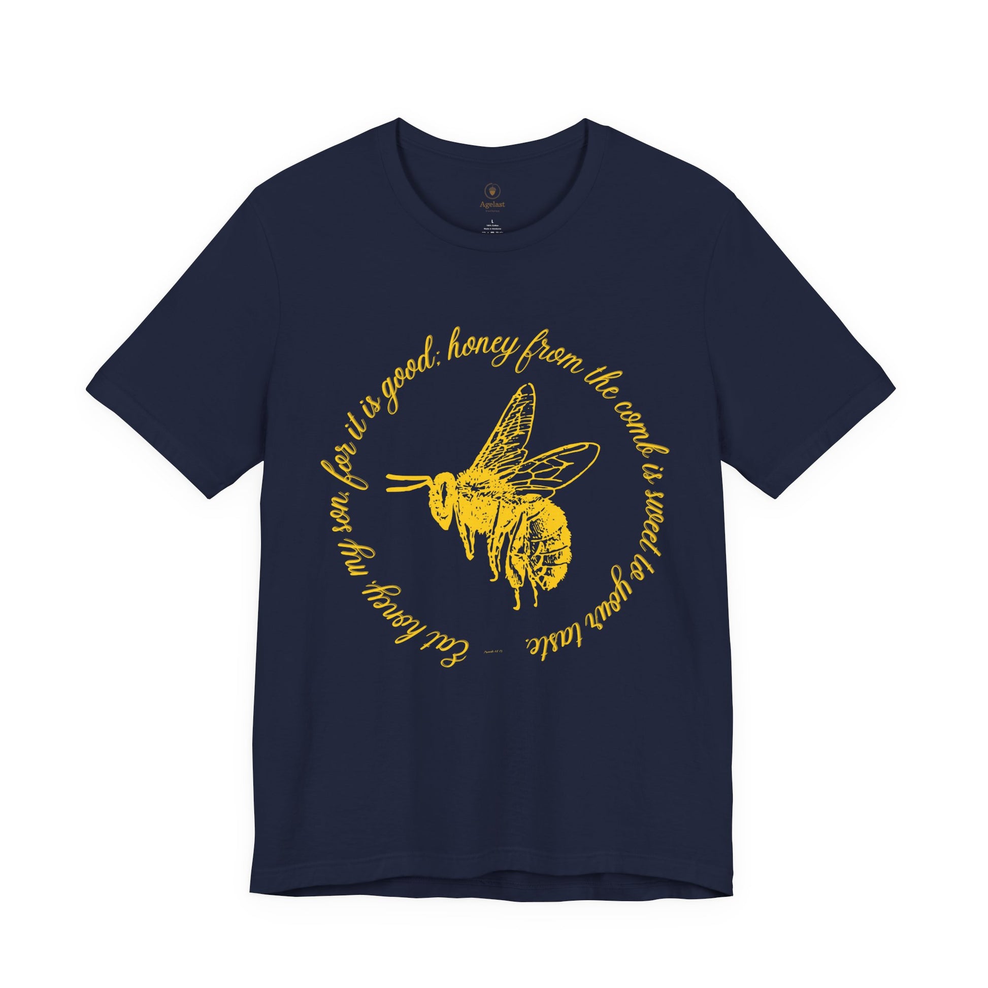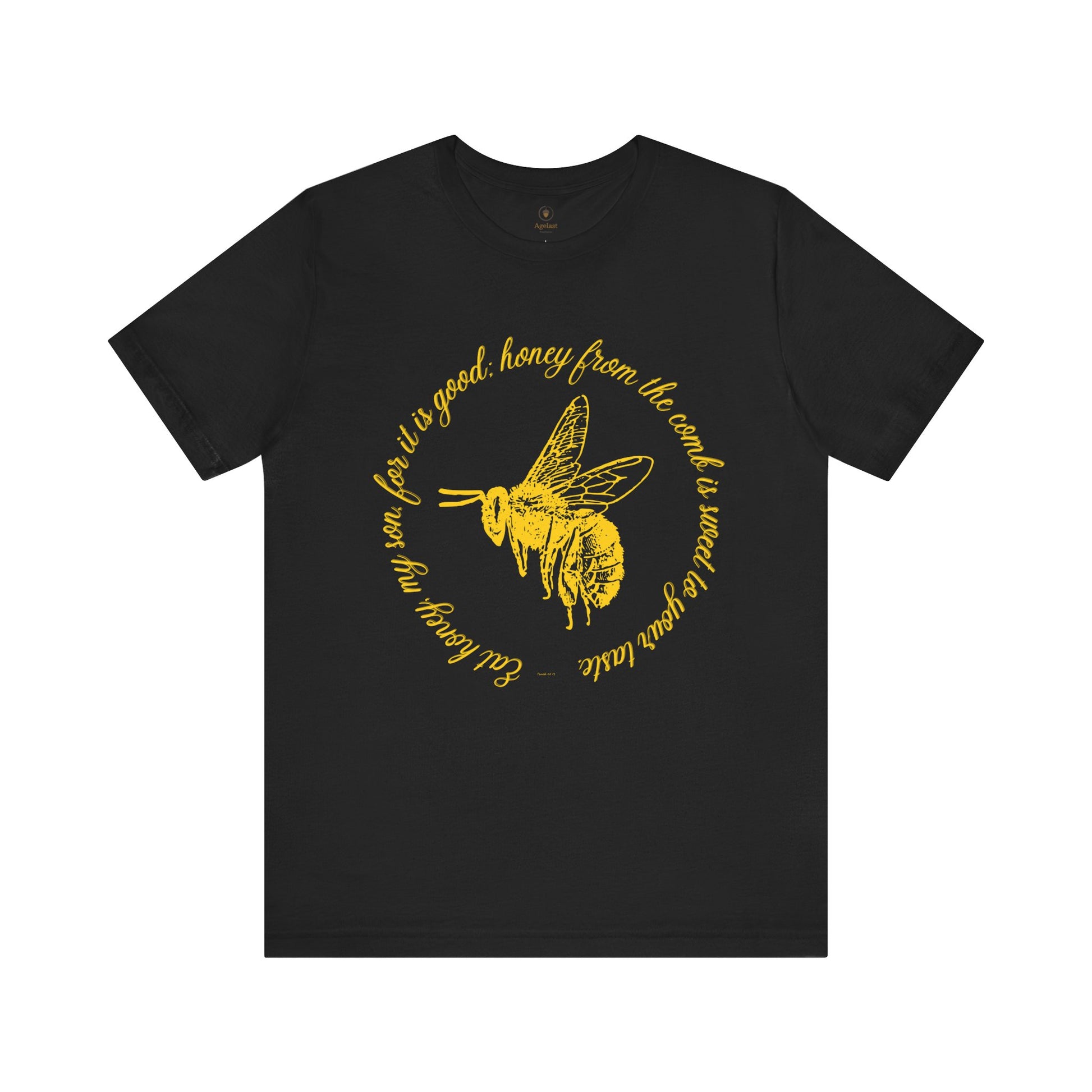 Proverbs 24:13 -- ideal for those with a penchant for anything apian, honey consumption, and/or bee-related graphics. This shirt gives off a casual and laid-back vibe, perfect for everyday wear and for general apiary chores. Also great for formal events (if you think you can get away with it).