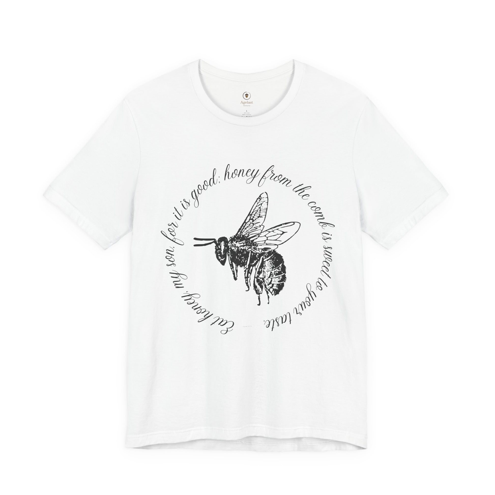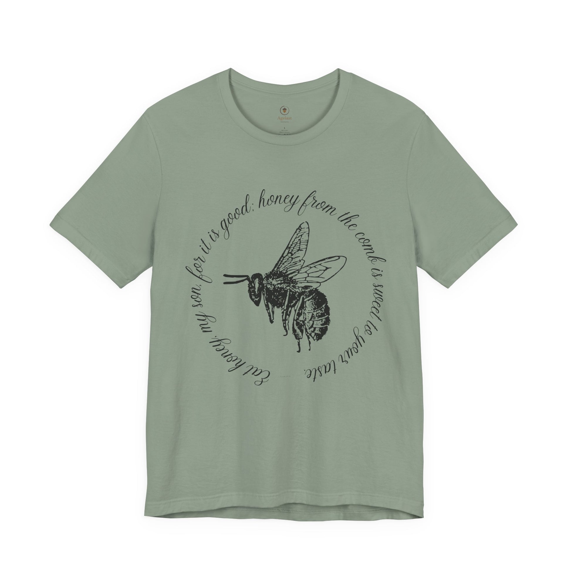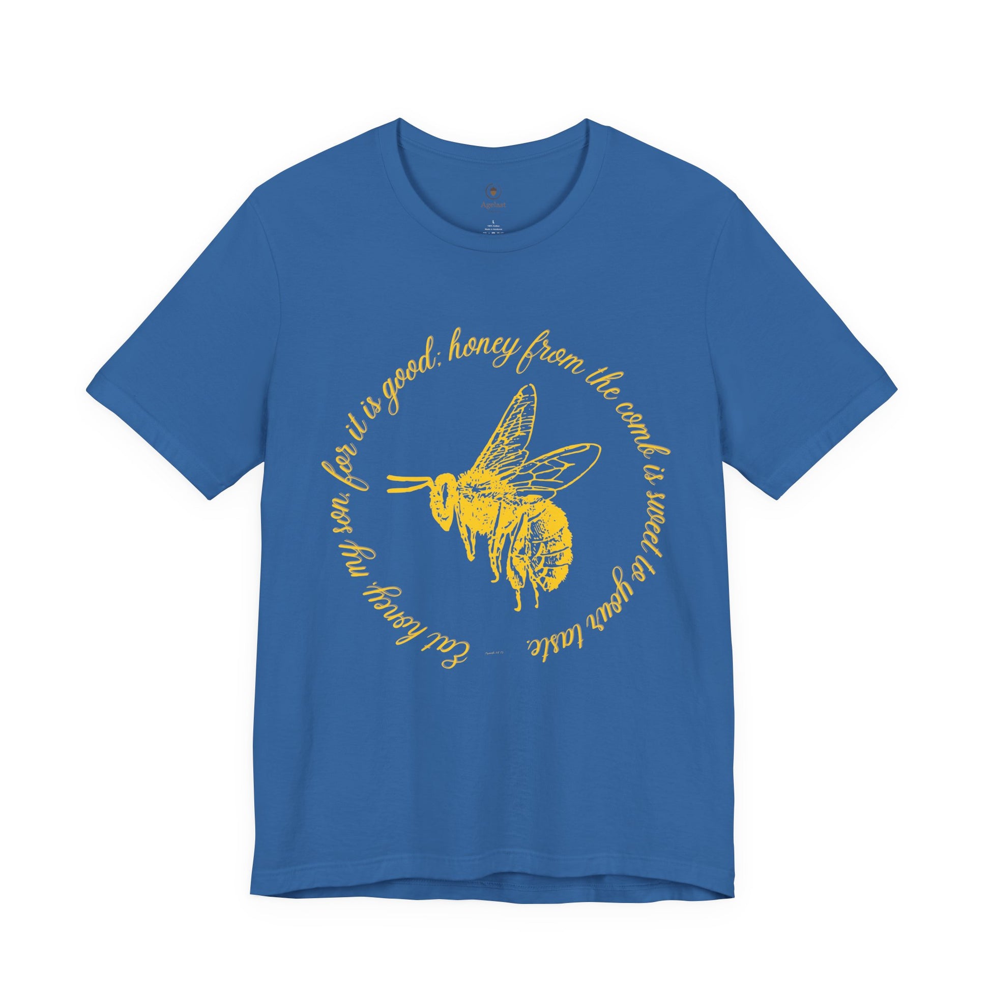 Proverbs 24:13 -- ideal for those with a penchant for anything apian, honey consumption, and/or bee-related graphics. This shirt gives off a casual and laid-back vibe, perfect for everyday wear and for general apiary chores. Also great for formal events (if you think you can get away with it).