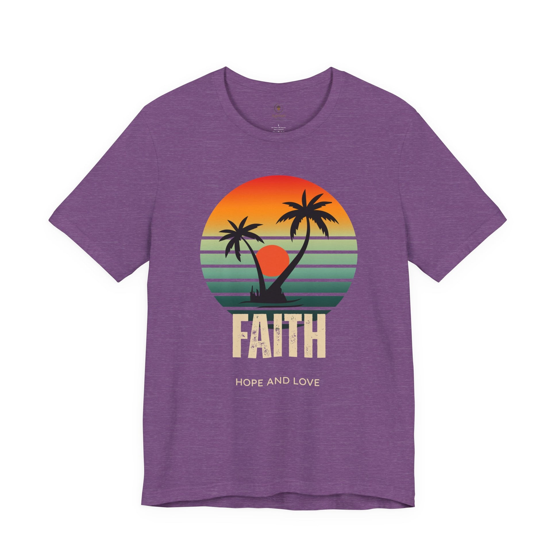 The essential spiritual virtues. Plus swaying palm trees. Great combination! Perfect choice for casual gatherings, but also good for more formal events like weddings and graduation ceremonies. Ideal for those who enjoy sparking conversations and sharing their faith, and those who long for the tropical island life. This shirt gives off a casual and laid-back vibe, perfect for everyday wear or casual gatherings. Also great for formal events (if you think you can get away with it).