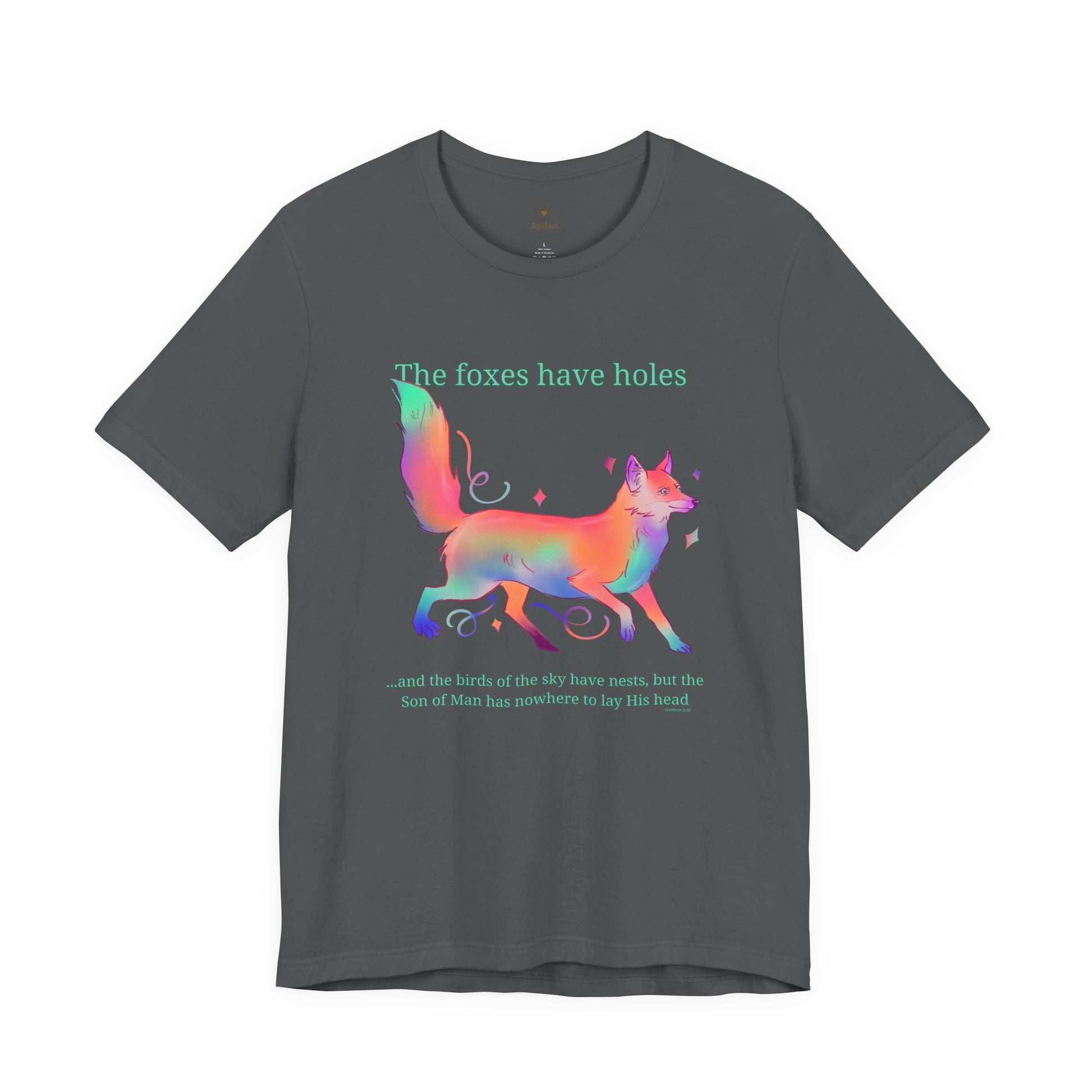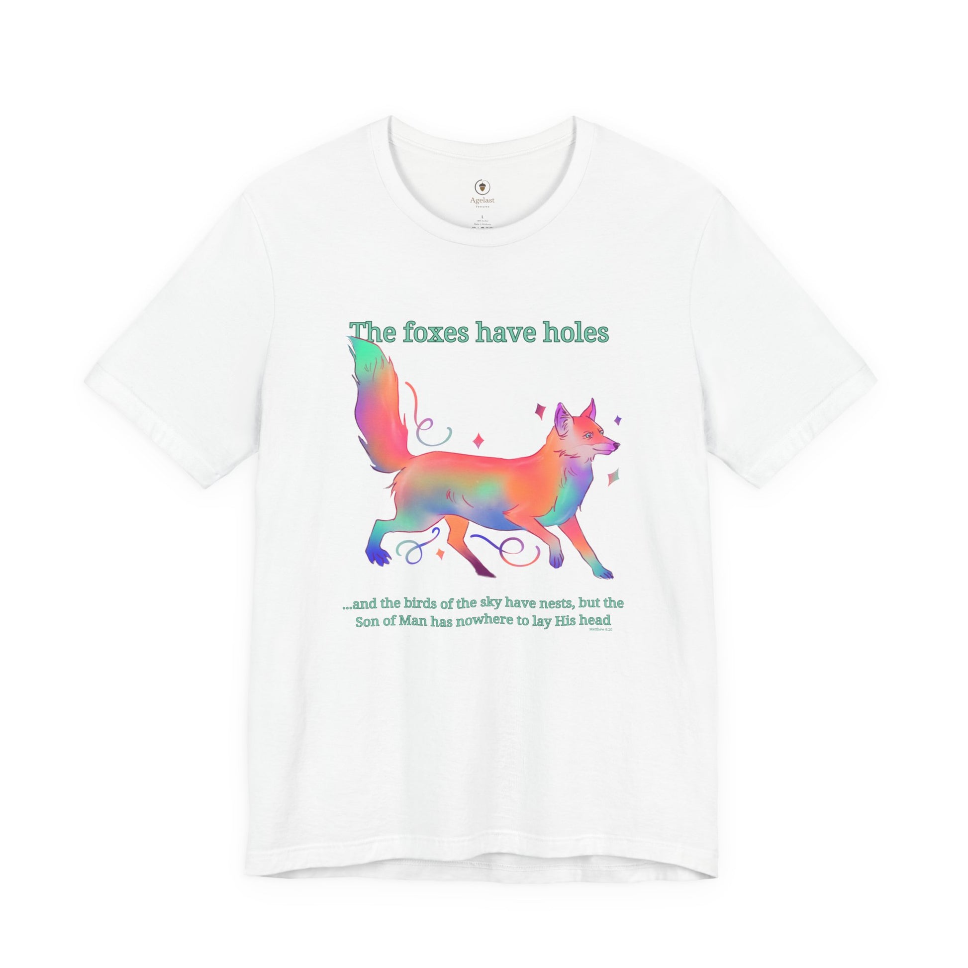 Matthew 8:20 -- even foxes have holes. Wear this shirt and be prepared for the possibility of interesting conversations.
