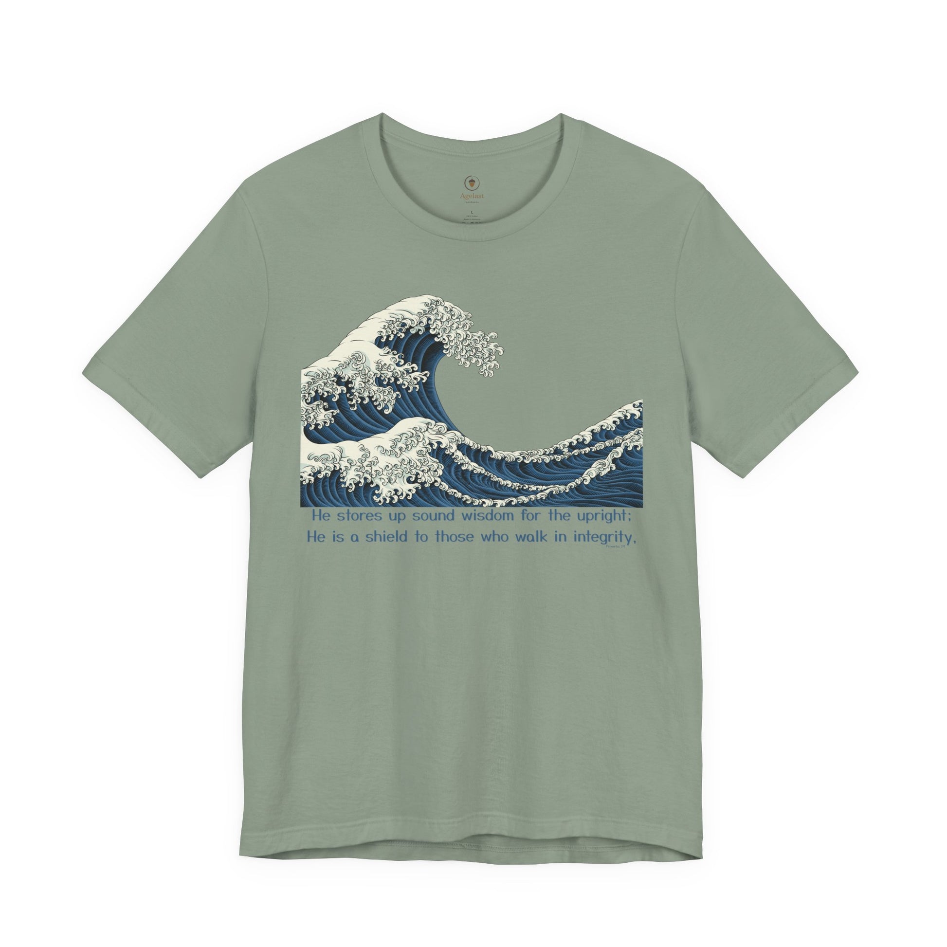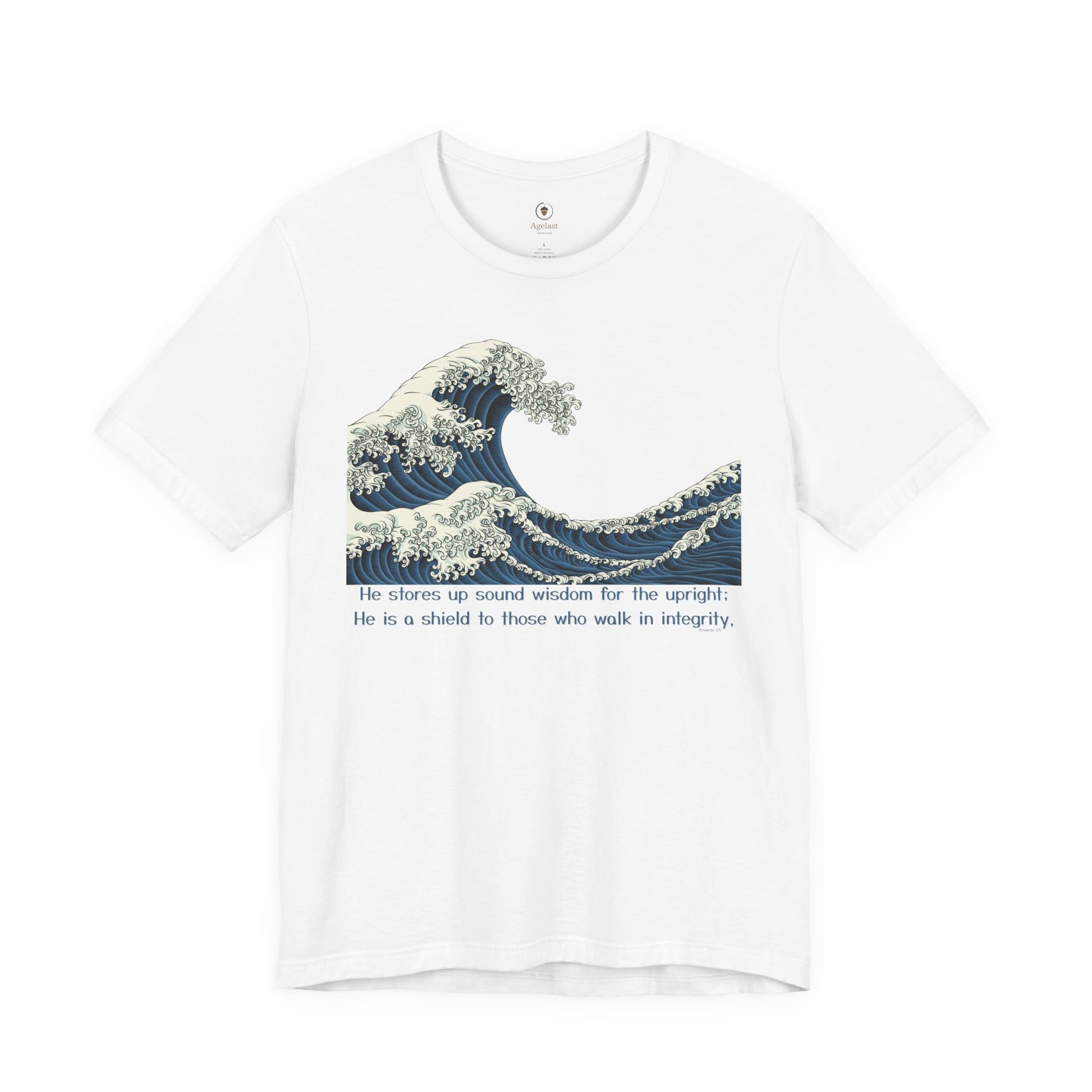 Proverbs 2:7 -- A terrific choice for anyone with interest in Japanese woodblock prints, wisdom, and/or the shield of God. This shirt is perfect for everyday wear and informal gatherings. Also great for high society events like graduation ceremonies and weddings (if you think you can get away with it).