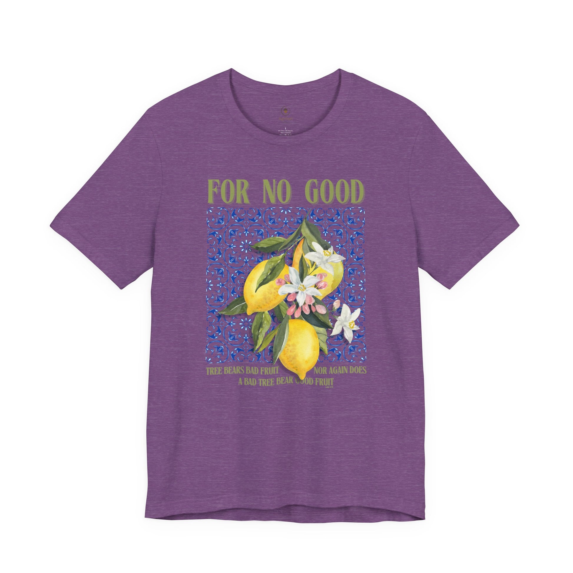 Luke 6:43 -- If you like lemons -- this shirt is for you. Perfect for informal gatherings like lemon harvesting, and sharing your faith. Also great for formal events (if you think you can get away with it).