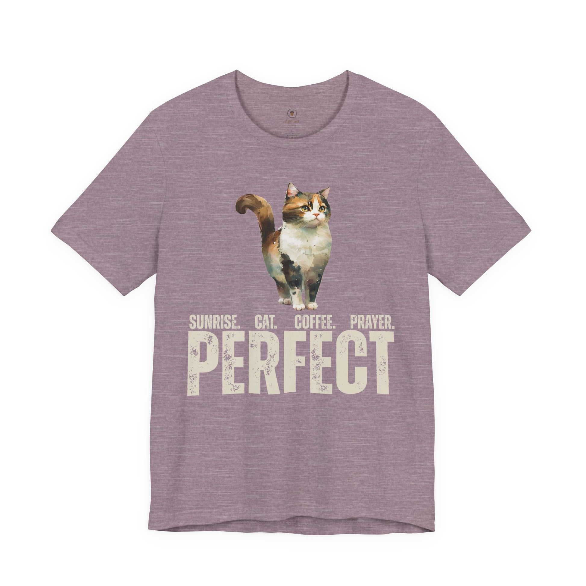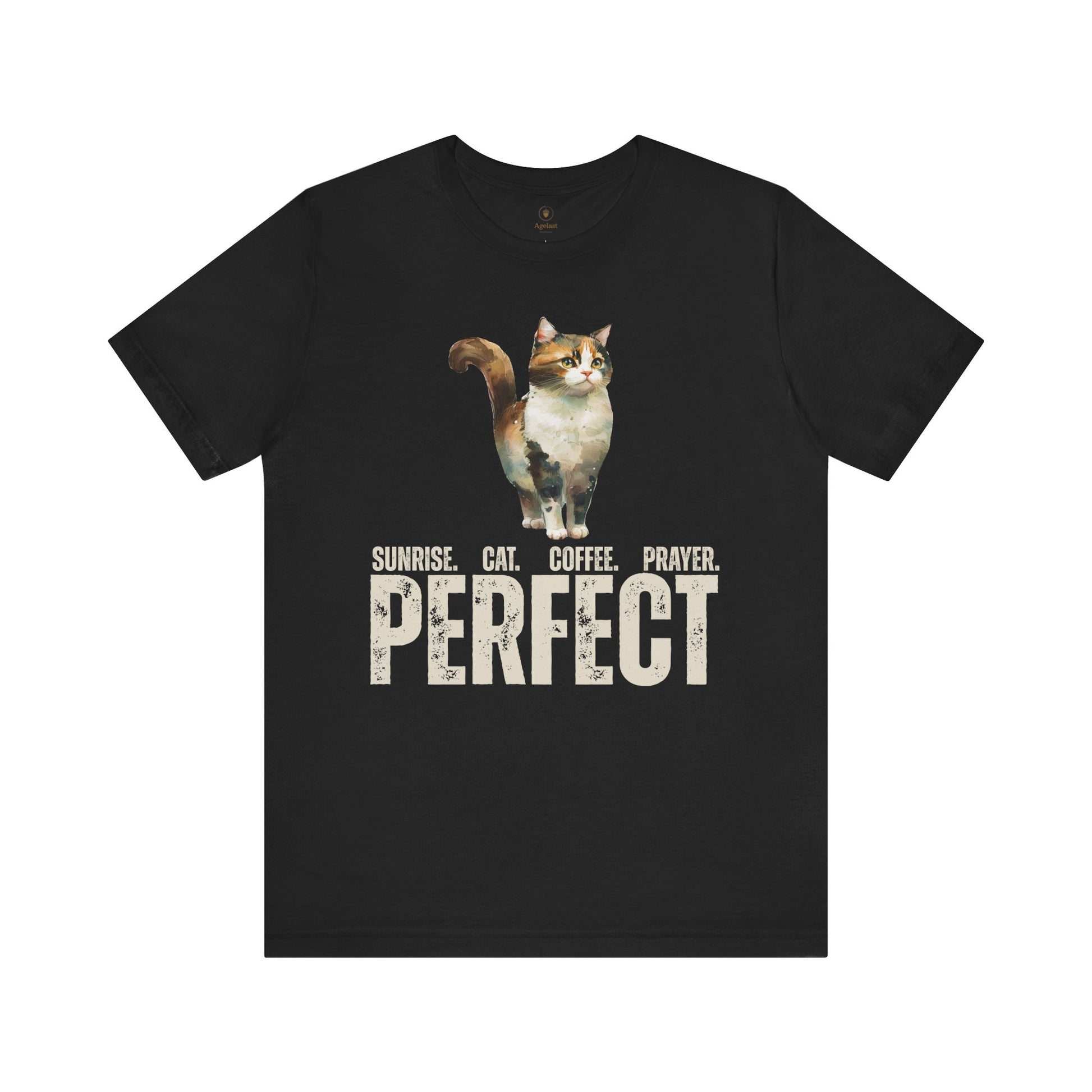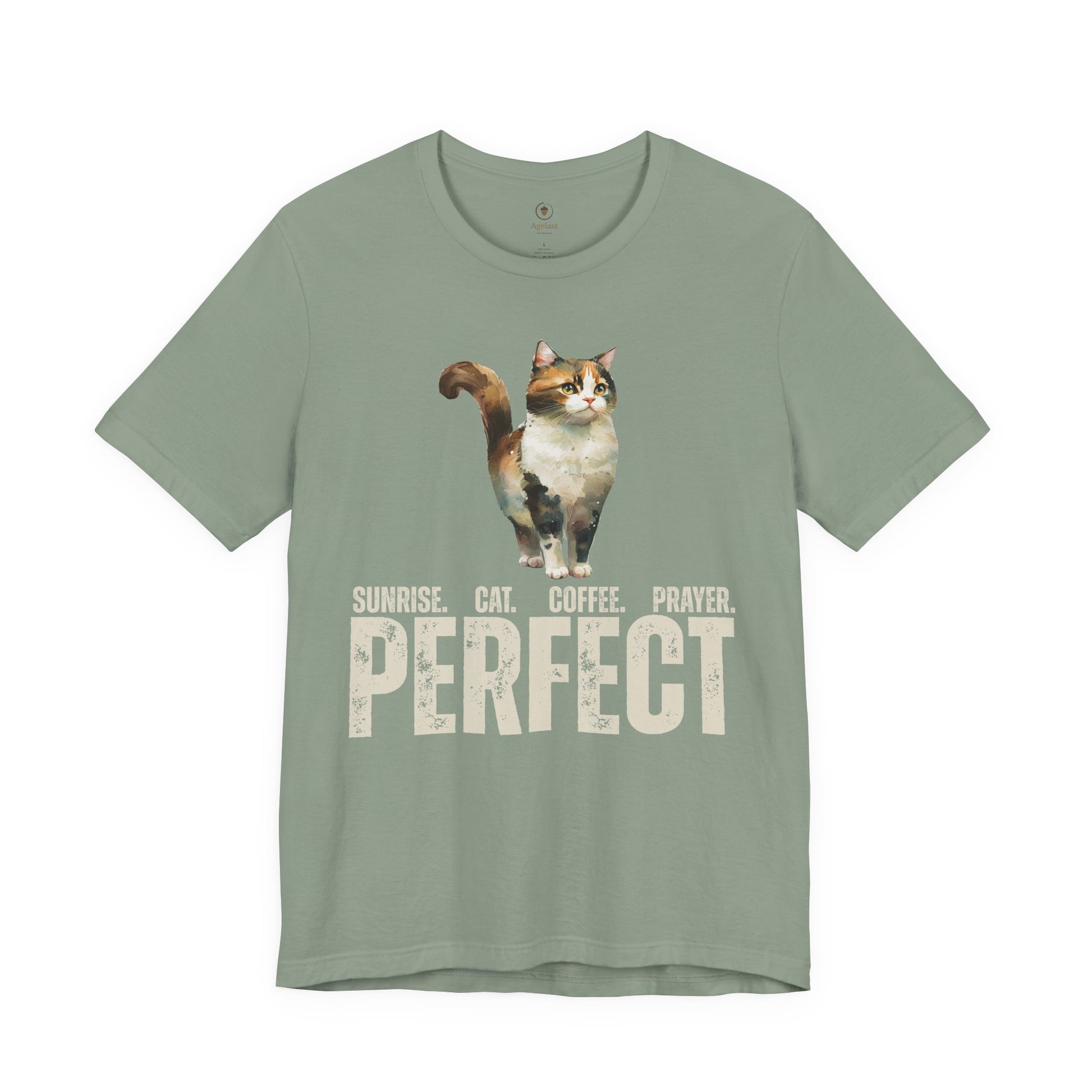 Sunrise with coffee, a feline companion, and prayer. Ideal for those who enjoy sparking conversations and sharing their faith, and/or discussing cats and prayer. This shirt gives off a casual and laid-back vibe, perfect for everyday wear or casual gatherings. Also great for formal events (if you think you can get away with it).