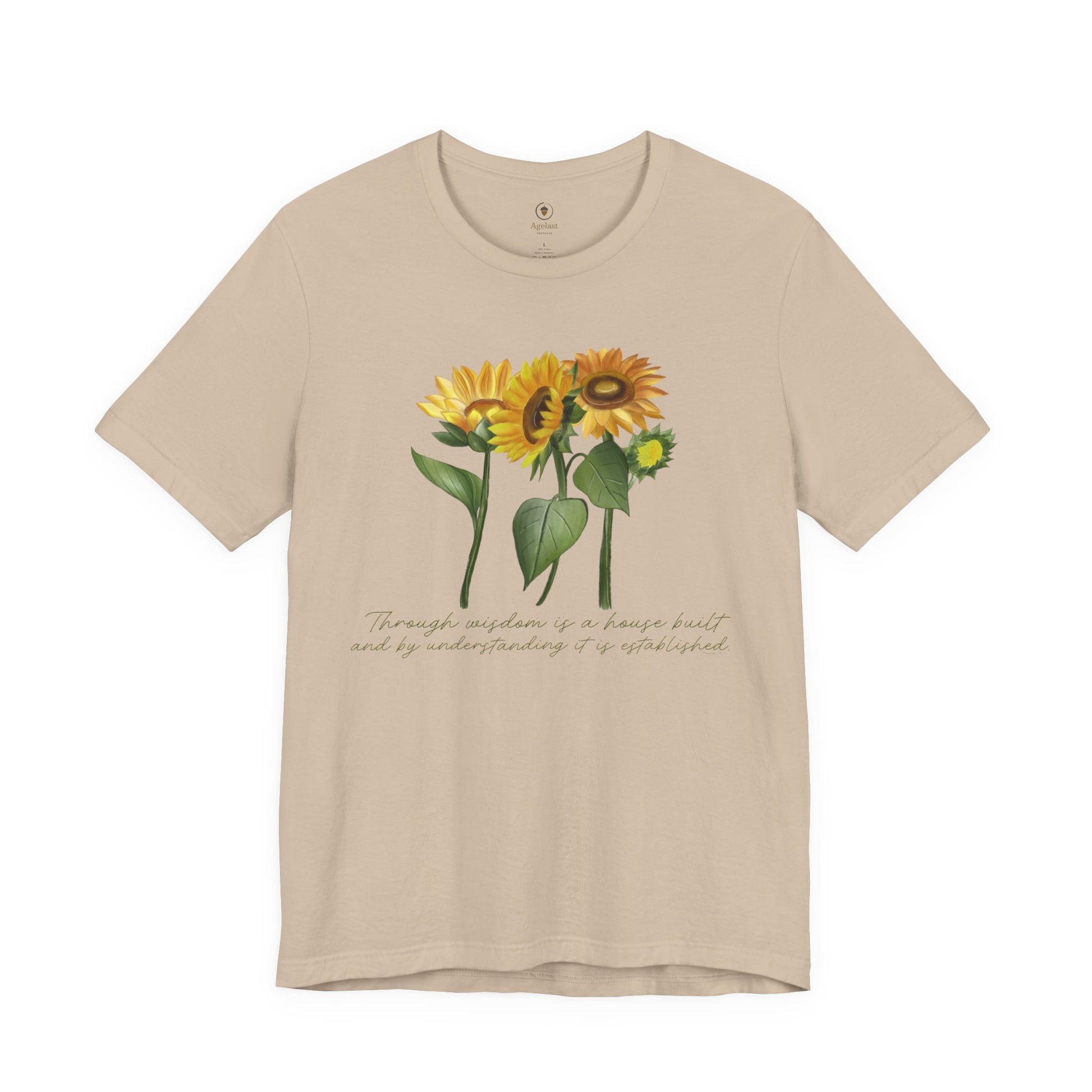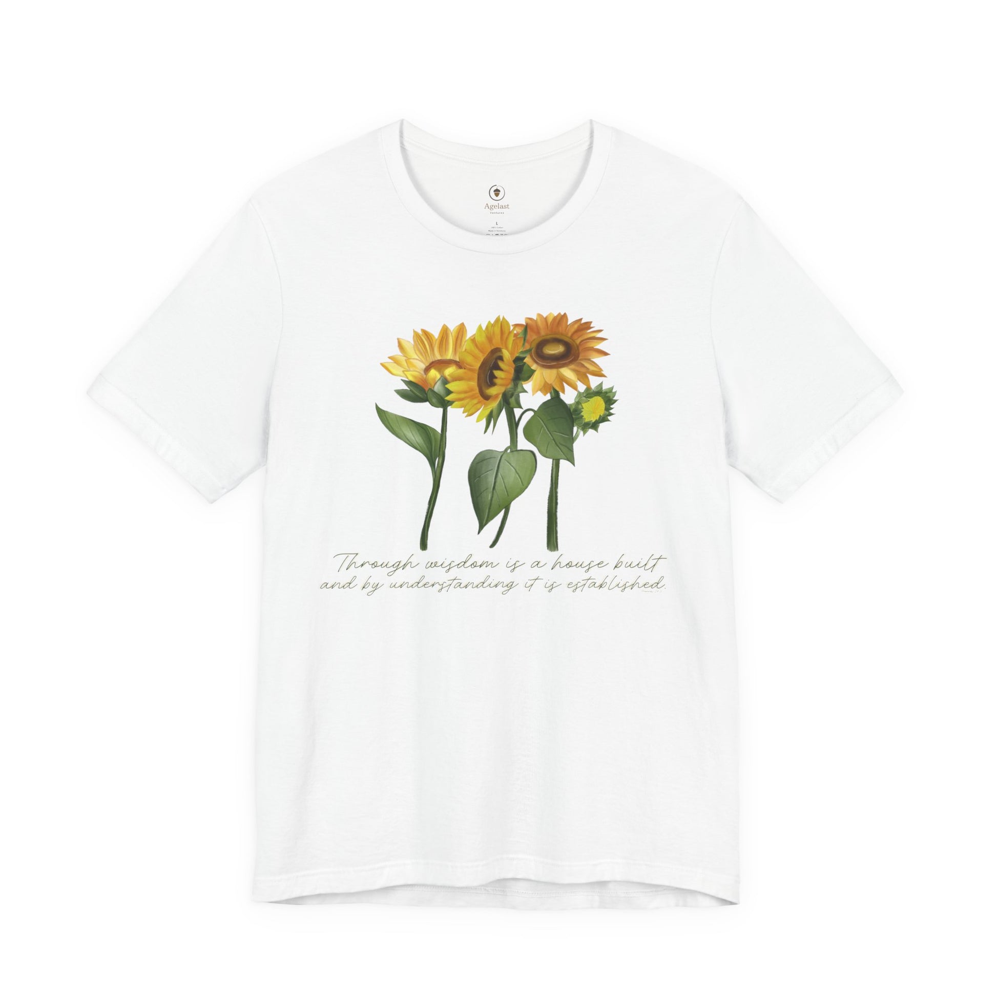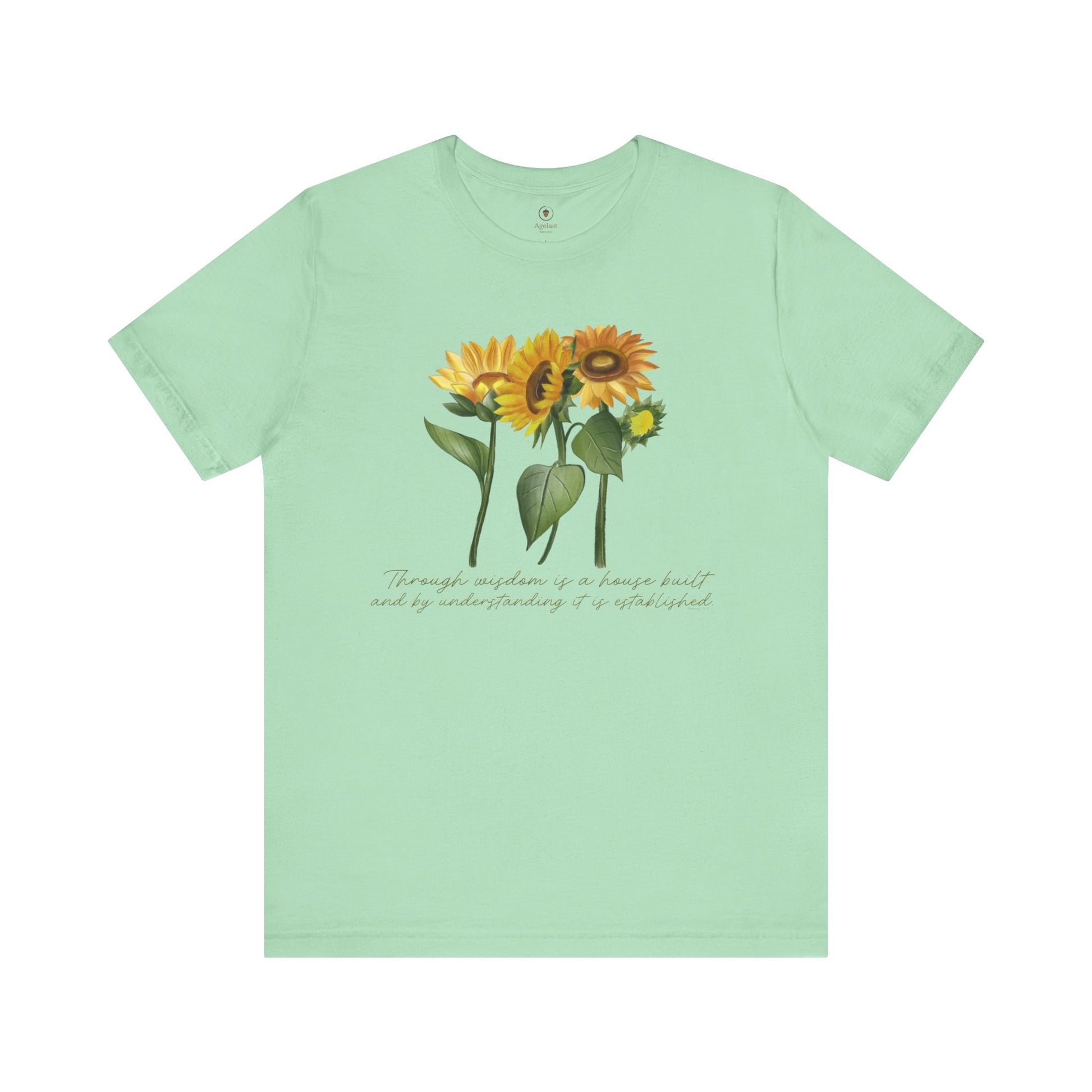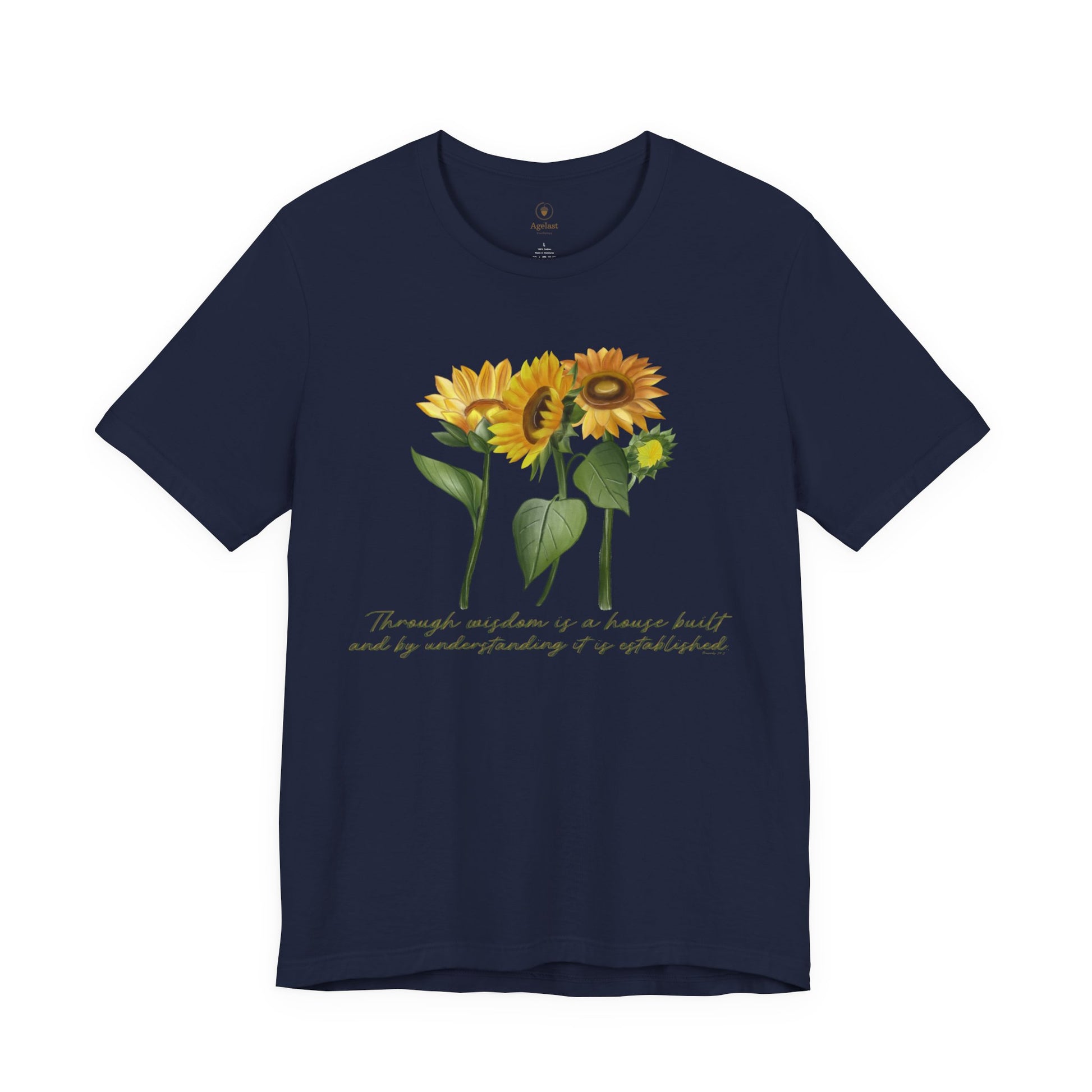 Proverbs 24:3 -- A great shirt for those who enjoy sunflowers, Proverbs, construction workers, and anyone else planning on building a house. This shirt gives off a casual and laid-back vibe, perfect for everyday wear or informal gatherings. Also great for formal events (if you think you can get away with it).